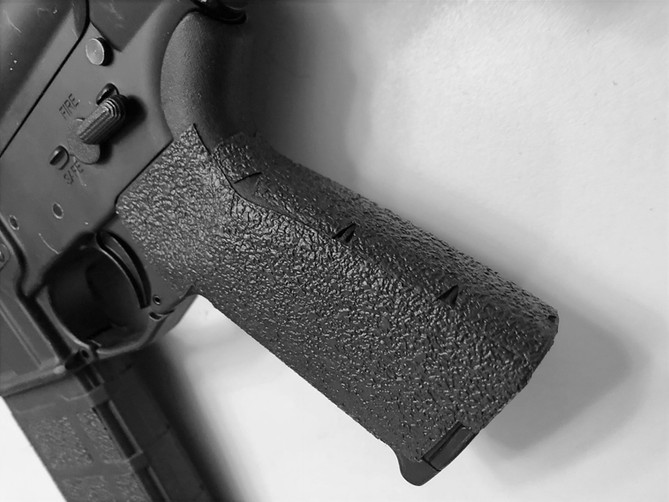 TEXTURED RUBBER: OUR MOST VERSATILE GRIP MATERIAL WE OFFER AND WORKS FOR EVERYTHING. ESPECIALLY CONCEAL CARRY. OUR TEXTURED RUBBER GRIPS HAVE OUTSTANDING GRIP BUT LESS AGGRESSIVE THAN OUR SANDPAPER MATERIAL. AVAILABLE IN BLACK, GRAY, AND DESERT SAND (LIGHT TAN NOT FDE) COLORS.