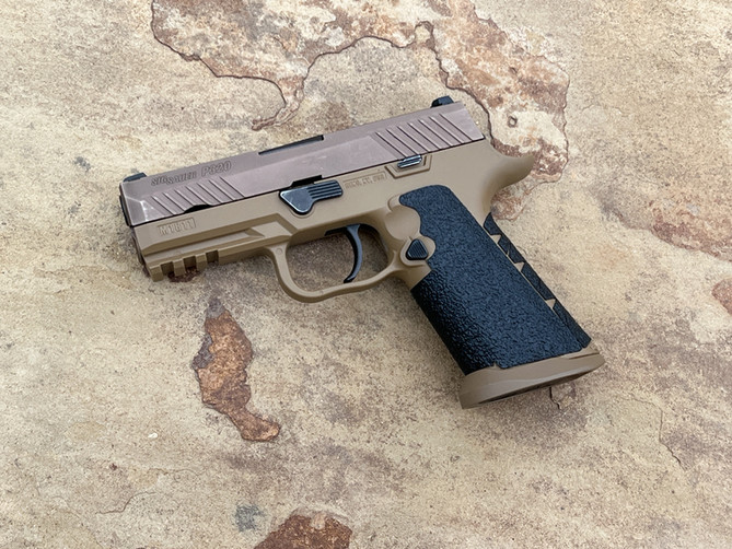TEXTURED RUBBER: OUR MOST VERSATILE GRIP MATERIAL WE OFFER AND WORKS FOR EVERYTHING. ESPECIALLY CONCEAL CARRY. OUR TEXTURED RUBBER GRIPS HAVE OUTSTANDING GRIP BUT LESS AGGRESSIVE THAN OUR SANDPAPER MATERIAL. AVAILABLE IN BLACK, GRAY, AND DESERT SAND (LIGHT TAN NOT FDE) COLORS.