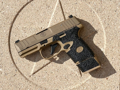 TEXTURED RUBBER: OUR MOST VERSATILE GRIP MATERIAL WE OFFER AND WORKS FOR EVERYTHING. ESPECIALLY CONCEAL CARRY. OUR TEXTURED RUBBER GRIPS HAVE OUTSTANDING GRIP BUT LESS AGGRESSIVE THAN OUR SANDPAPER MATERIAL. AVAILABLE IN BLACK, GRAY, AND DESERT SAND (LIGHT TAN NOT FDE) COLORS.