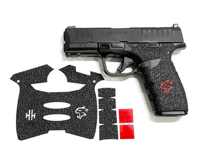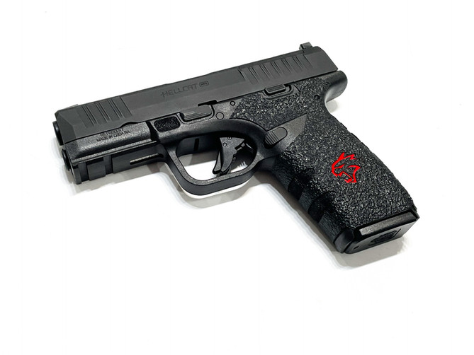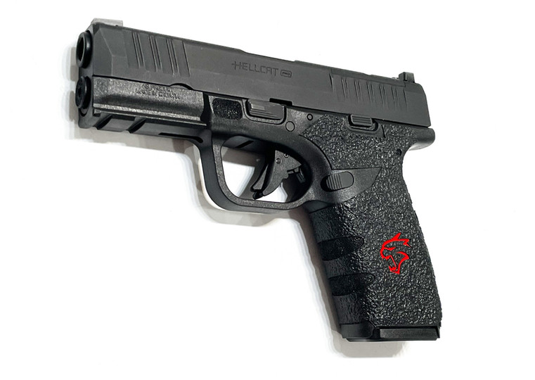 Springfield Hellcatt textured rubber/ sandpaper grip enhancement! Outstanding improvement to the stock grip! Try it you'll be amazed and want one of our grip enhancements for all of your firearms!