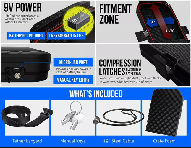 VAULTEK LIFEPOD BLACK 1.0 ADVENTURE / PISTOL SAFE WITH FREE GUN GRIP